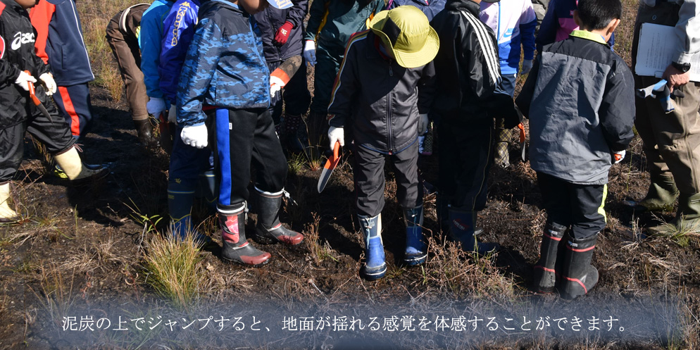 ・泥炭の体感(地面が揺れる、スコップで掘る、手触り、長靴越しの感触等)