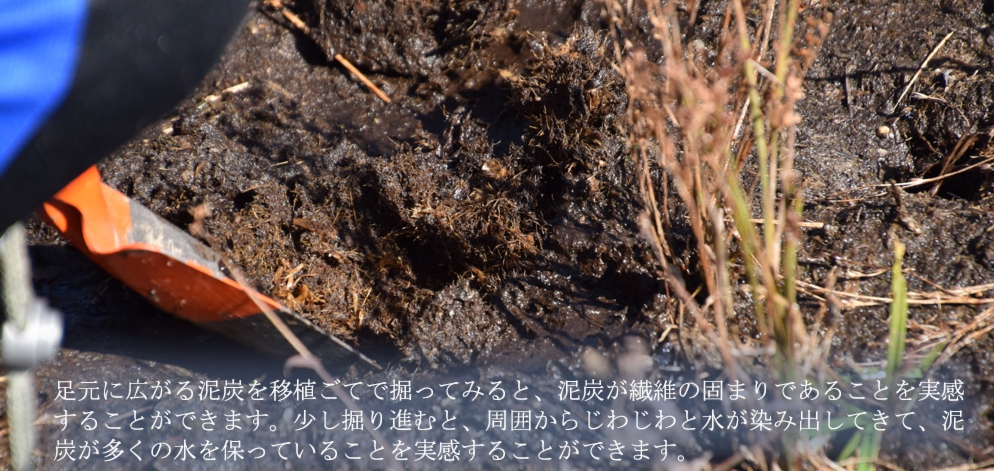 ・地下水位の体感(泥炭を掘り水が染み出ること、溜まっていることを体験)